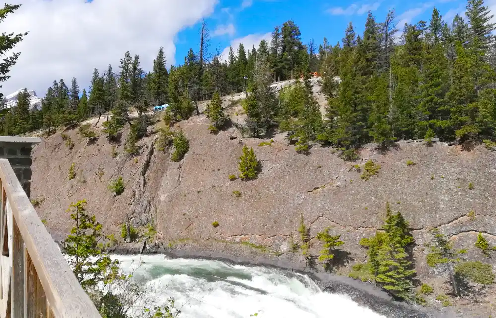 Si vas con carrito o silla de ruedas, tendrás que volver y ir en coche al Bow Falls Viewpoint. Tiene un parking allí mismo.