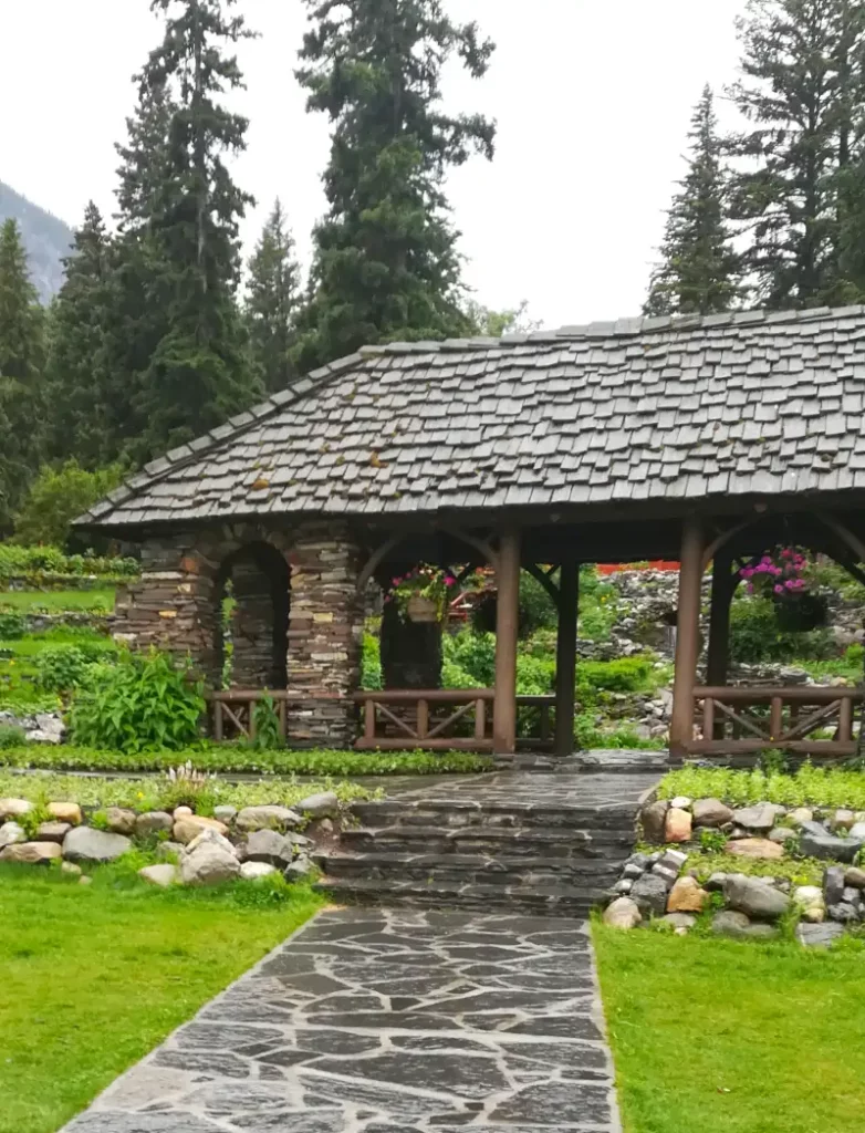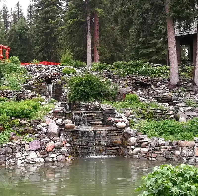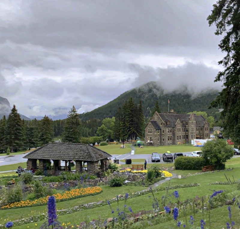 Si quieres te cuento un poco los datos. Estos jardines de Cascade of Time Garden se construyeron en los años 30 alrededor del edificio de la Administración de Parks Canada. El edificio que vas a ver sí o sí, es de 1937 y fue la estructura más grande en su tiempo de Parks Canada.